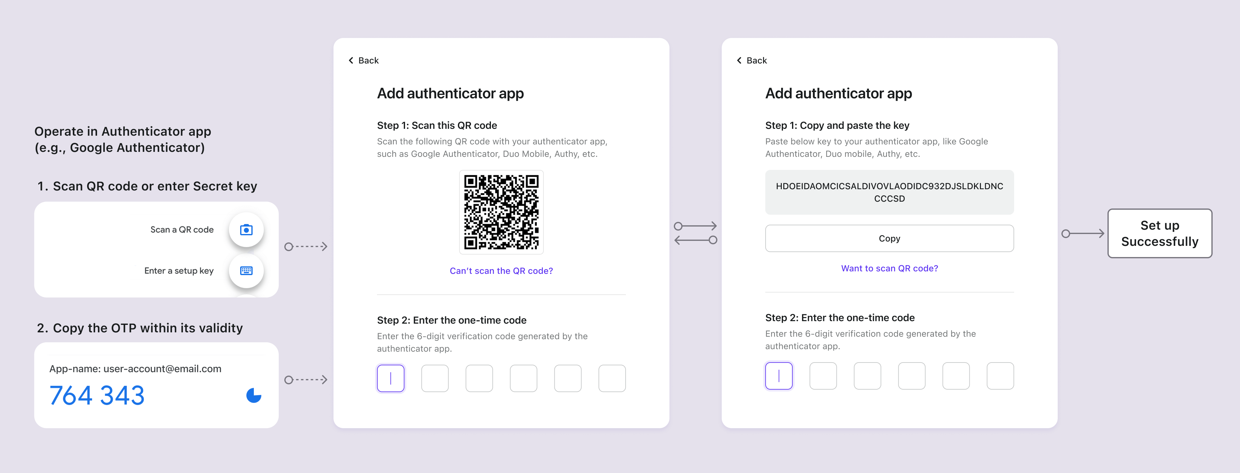 1. QR-Code oder geheimer Schlüssel: Benutzer erhalten einen QR-Code oder einen geheimen Schlüssel von deinem Dienst.